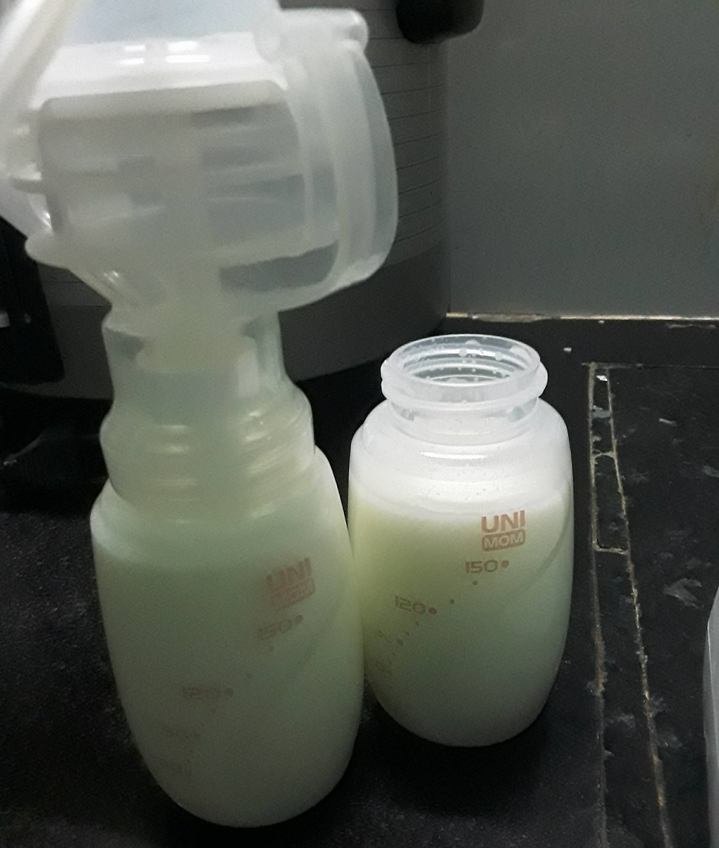 Mà sữa em nó đặc đến nỗi mà nước nó chỉ có 1 ít thôi, có chút xíu. Nhiều khi em còn sợ bé nó khát nước nên phải cho bé uống nước. Sữa em nó đặc lắm."