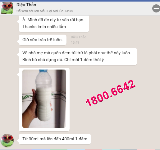 Mẹ Lương Thế Mai (Đồng Nai) chia sẻ trong niềm vui vô bờ bến: “Lên Facebook của Ích Mẫu Lợi Nhi có nhiều mẹ dùng tốt nên em mua về dùng thử, sau 3 ngày dùng 2 viên, trước ăn tối 30 phút 01 viên, trước khi đi ngủ 01 viên, sữa tăng lên rõ rệt từ 20 lên 50, 60ml rồi đúng 1 tuần thì sữa em vắt được đầy bình lớn 150 ml.