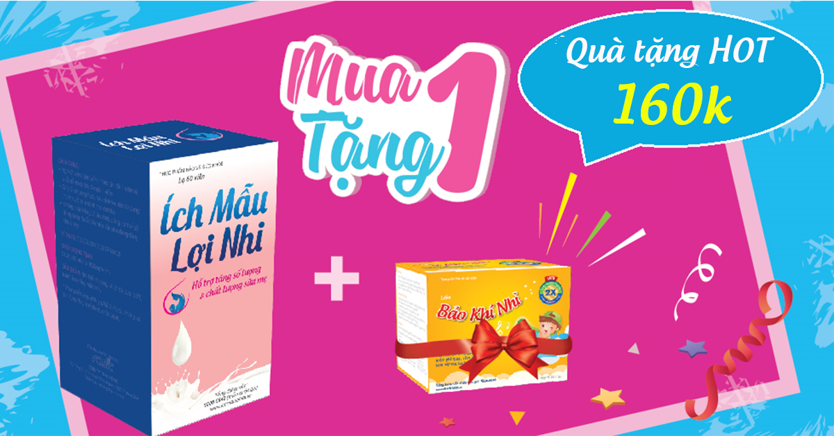 - Mua 01 hộp Ích Mẫu Lợi Nhi 60 viên được tặng 01 hộp Ích Mẫu Lợi Nhi 10 viên (trị giá 135.000đ) hoặc 01 hộp Bảo Khí Nhi (trị giá 160.000đ)