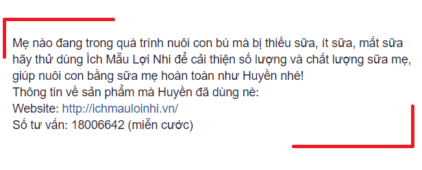 Mãi cho tới khi Nem sang tháng thứ 4, một người bạn DƯỢC SĨ của Huyền tới thăm, nghe tình trạng của Huyền thì bảo Huyền là phải dùng ngay cái viên uống lợi sữa ÍCH MẪU LỢI NHI ngay..."