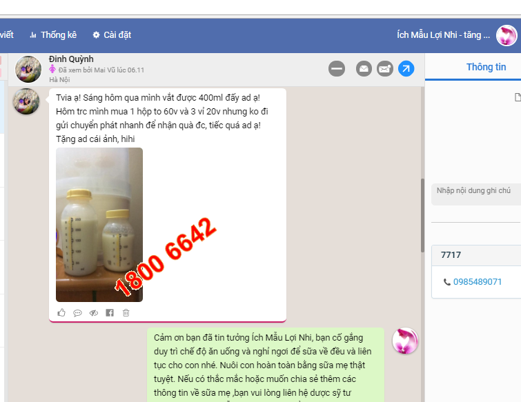 Chị Châu chia sẻ: “Ích Mẫu Lợi Nhi chăm sóc khách hàng rất ok, nhiệt tình, không chỉ riêng em mà rất nhiều mẹ nữa ạ! Em rất tin tưởng sản phẩm và sẽ sử dụng thường xuyên để có sữa đặc và dư cho bé bú.”